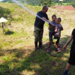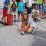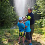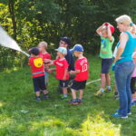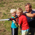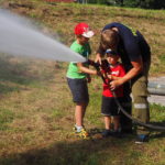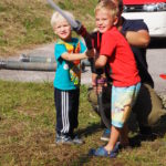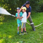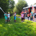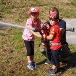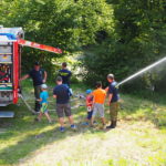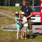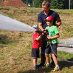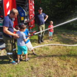 Neben der Vorstellung der Feuerwehrjugend, einer Fahrt mit dem Tanklöschfahrzeug und dem spielerischen Durchsuchen des künstlich verrauchten Kellers des Feuerwehrhauses wurde buchstäblich aus allen Rohren „gelöscht“.