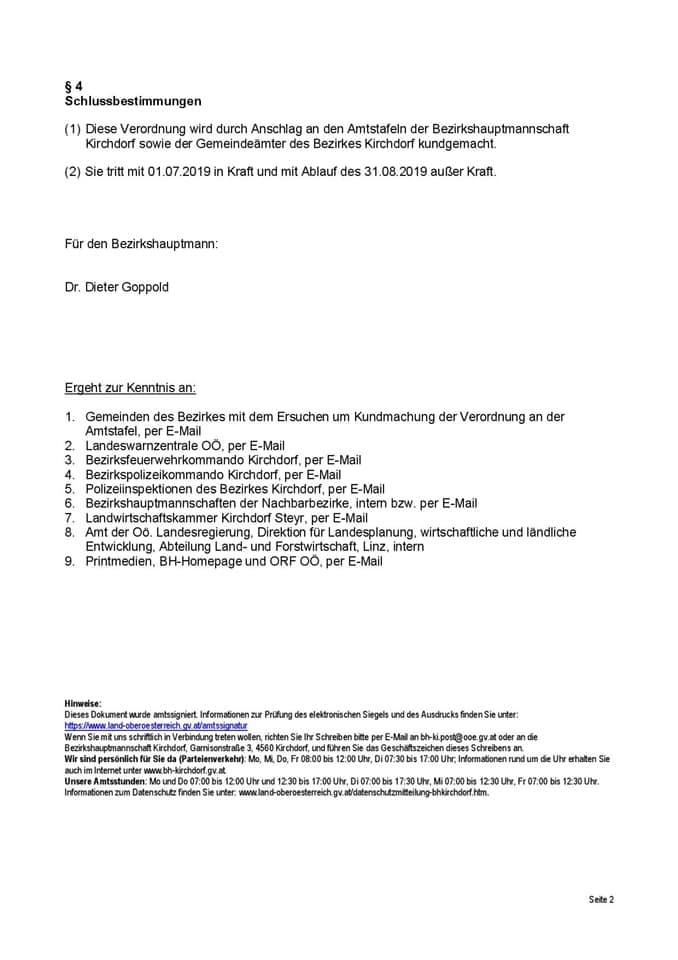 Waldbrand-Schutzverordnung im Bezirk Kirchdorf