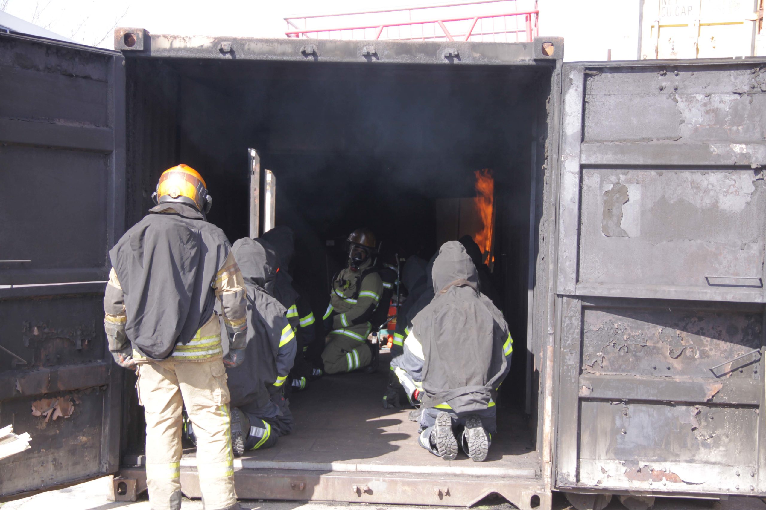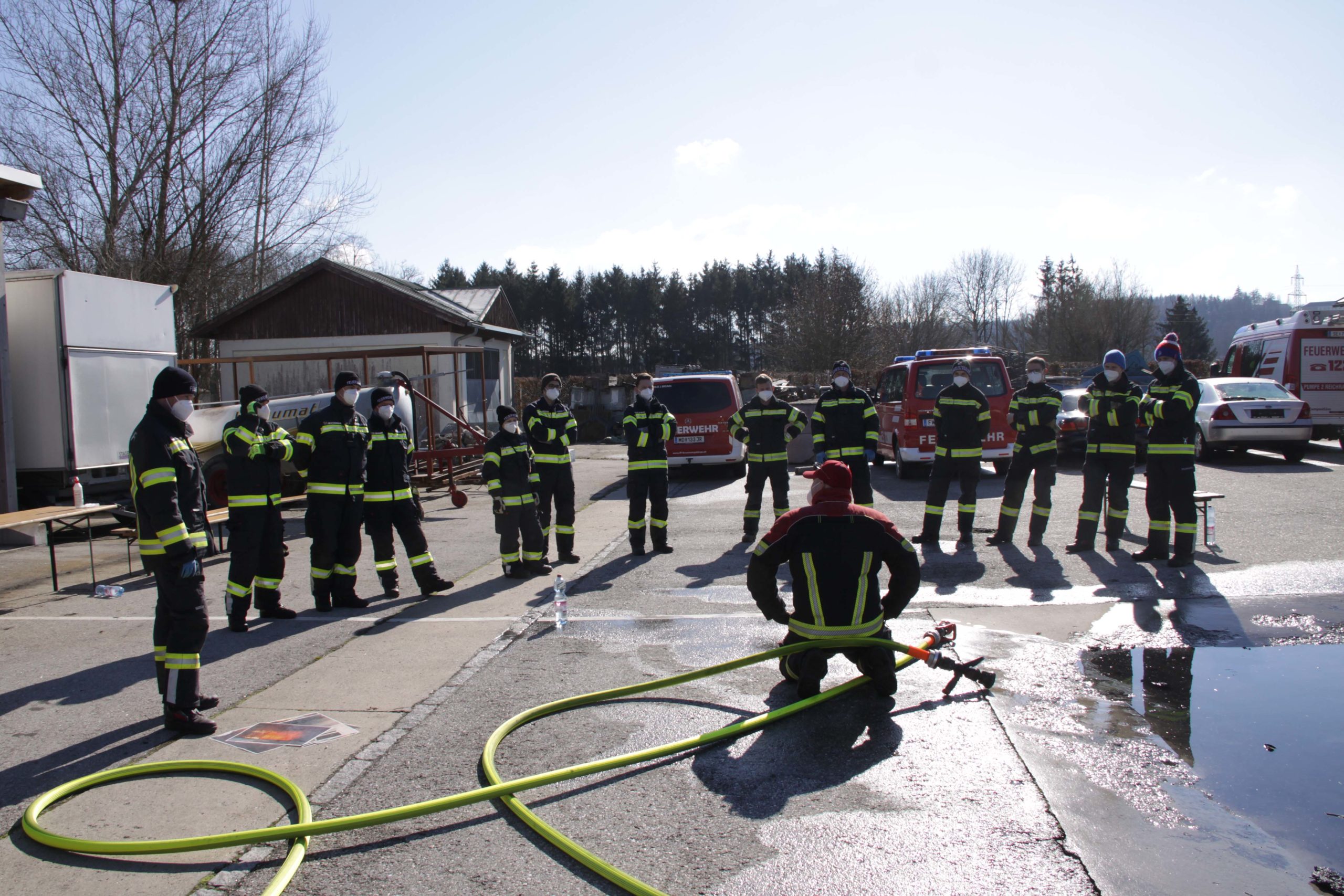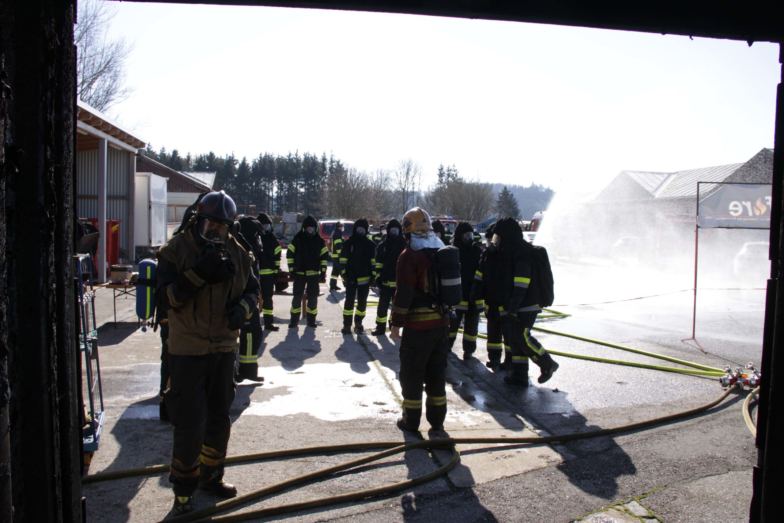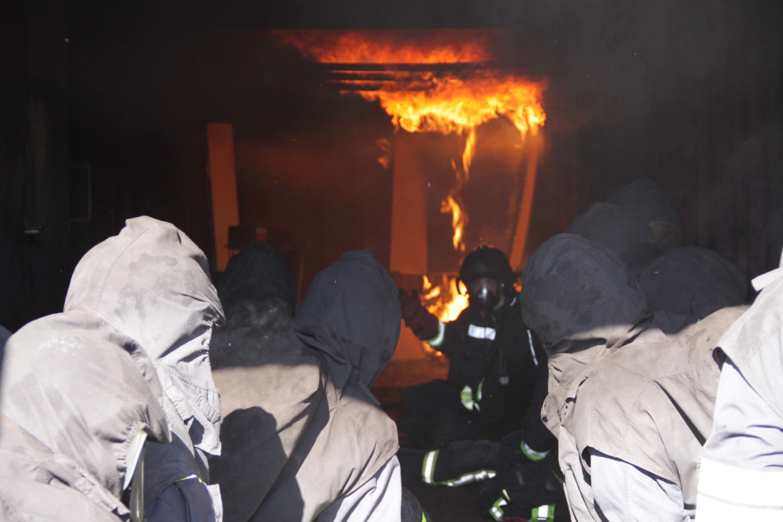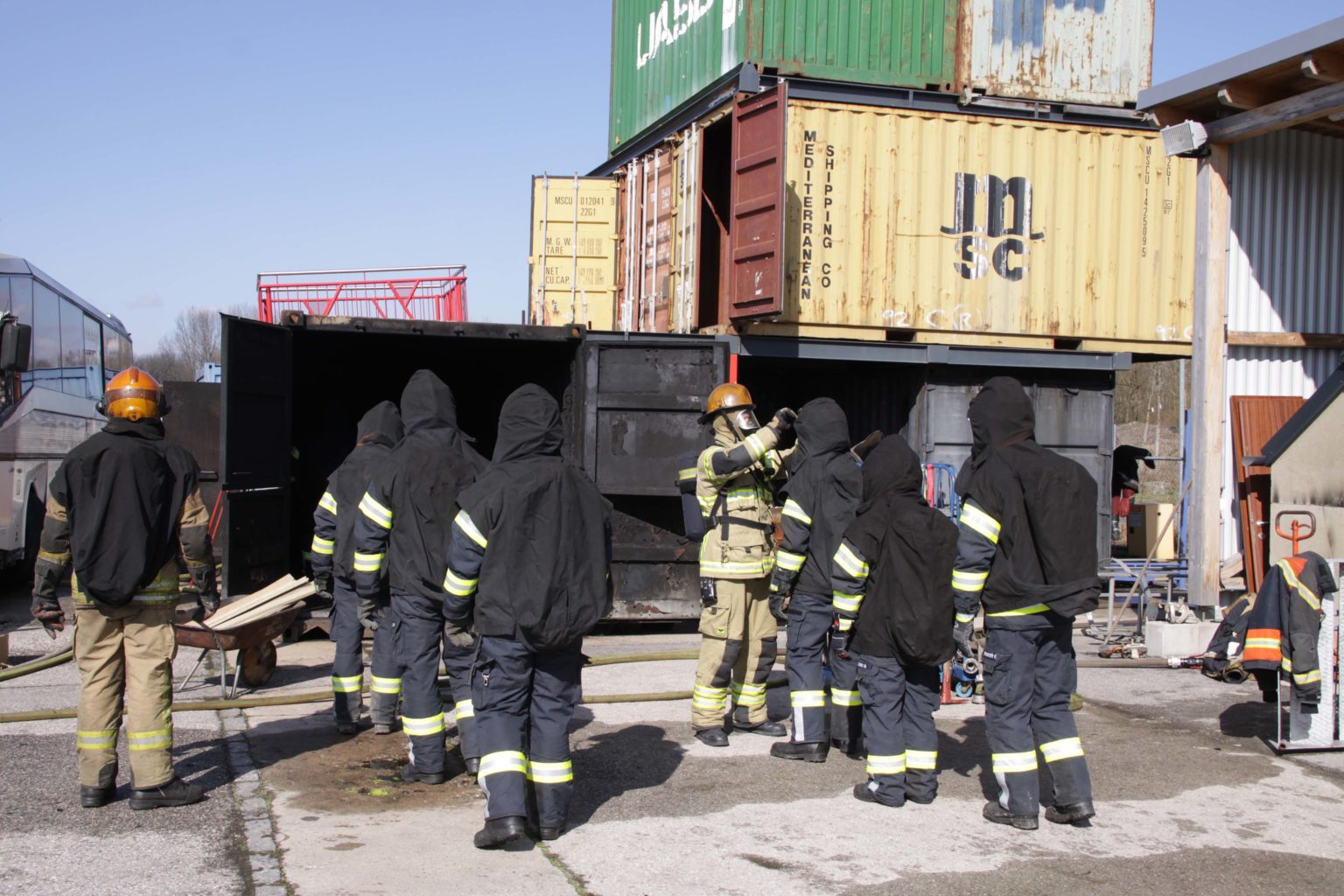 Die Begriffe „Brennstoff kontrollierter Brand“, „Sauerstoff kontrollierter Brand“, „Pyrolyse“, „Wärmeträger Rauch“, konnten in der Praxis vorgeführt und erlebt werden.  Nachdem diese Begriffe und Phänomene im Modell vorgeführt wurden, konnten die wichtigsten Brandbekämpfungstechniken beim Strahlrohrtraining geübt und angewendet werden.