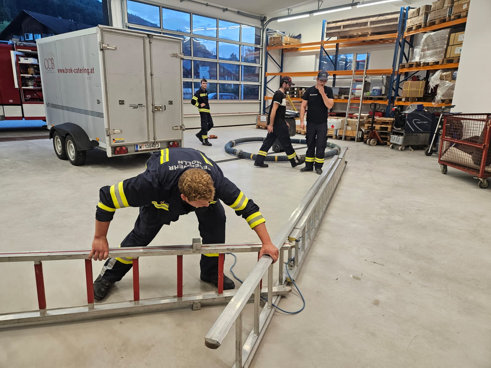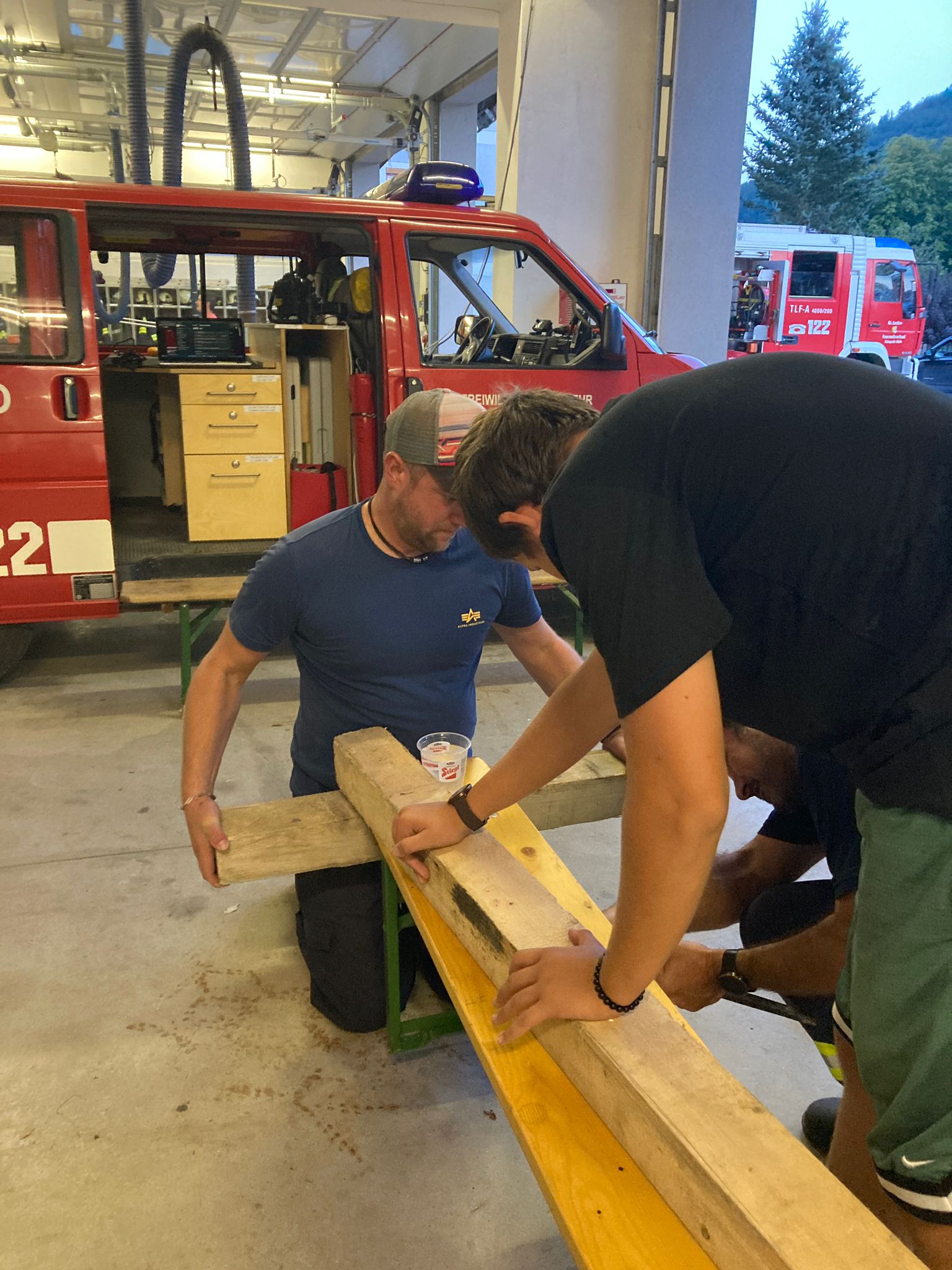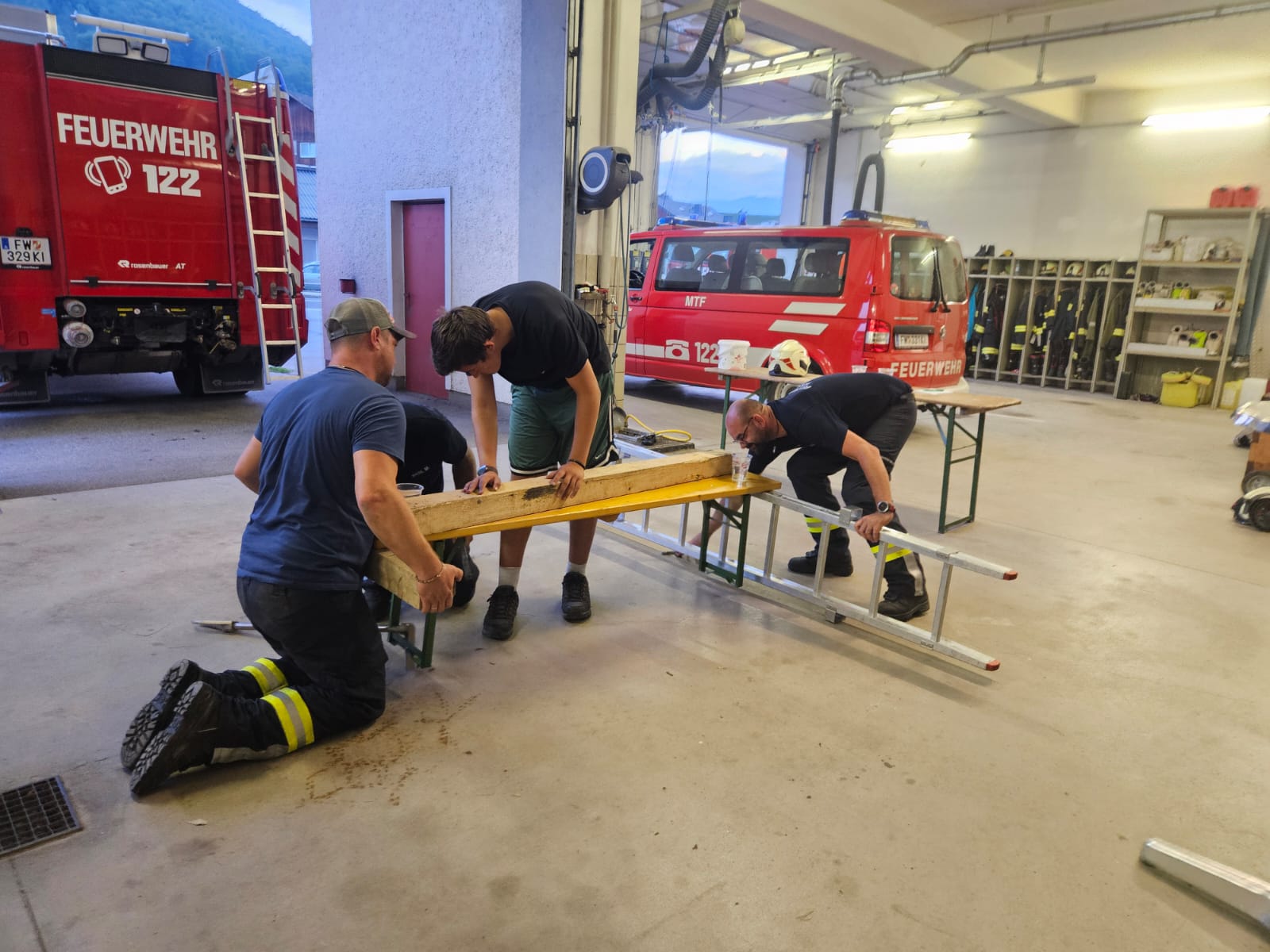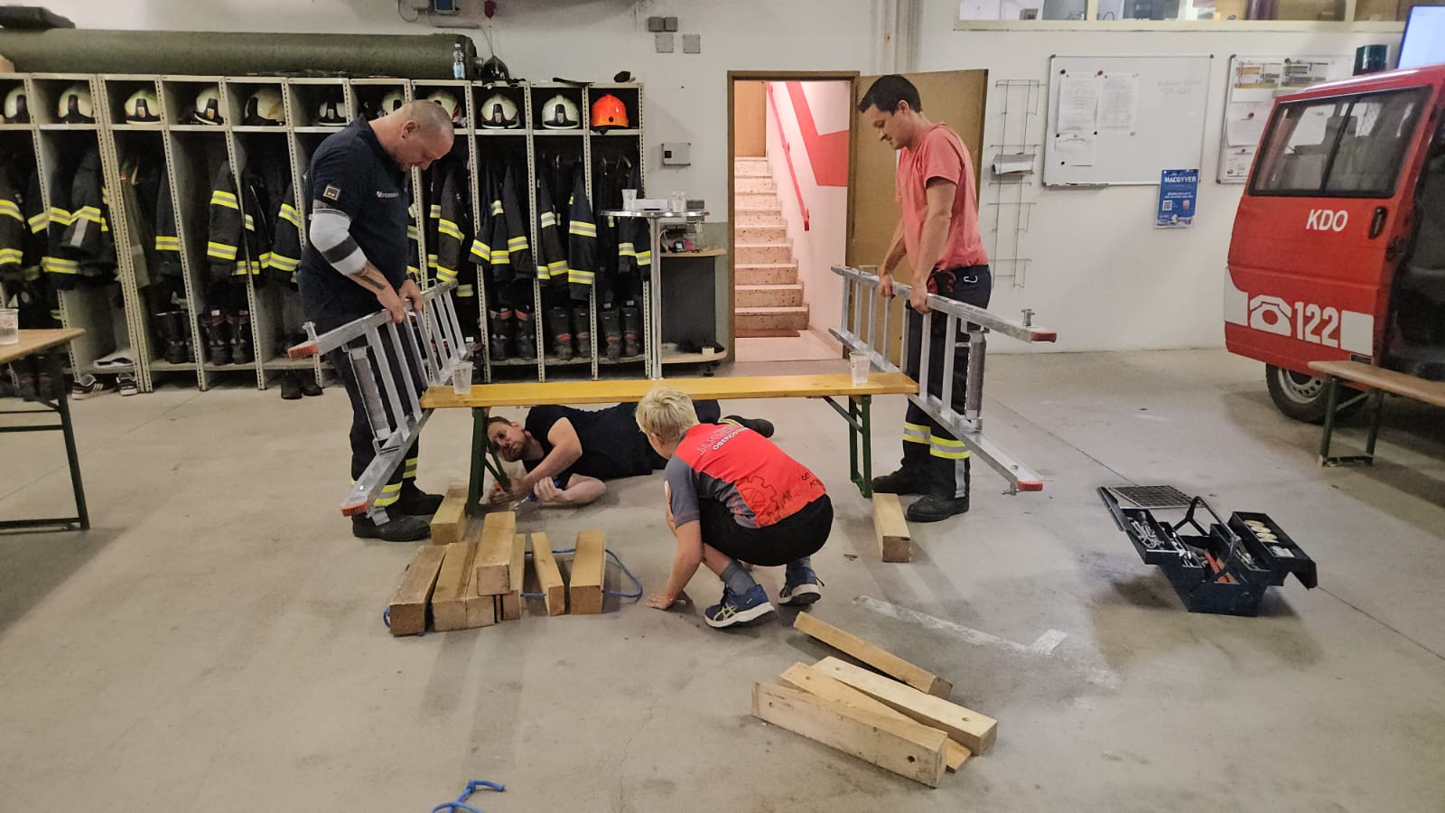 Jeder der 3 Übungsgruppen erhielt 3 Aufgaben, die im Stationsbetrieb abzuarbeiten waren – nur unter Verwendung von Ausrüstungsgegenständen, die wir in unseren Einsatzfahrzeugen mitführen: