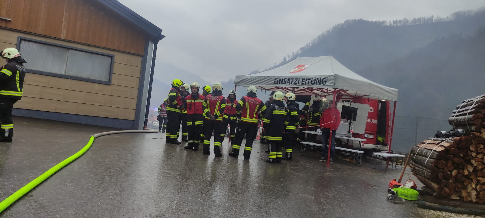 Die eingesetzten Feuerwehren des Abschnitts Grünburg – unterstützt von Spezialkräften mit Drehleiter- und Einsatzführungsunterstützungs-Fahrzeug – arbeitet trotz strömenden Regens intensiv und übten wichtige Abläufe. Diese umfassten hier unter anderem den Aufbau einer effektiven Einsatzleitstelle, die rasche Suche und Rettung vermisster Personen durch AtemschutzgeräteträgerInnen, die Löschwasserversorgung mittels Relaisleitungen zum Objekt und die Zusammenarbeit mit Rettungskräften des Roten Kreuz.