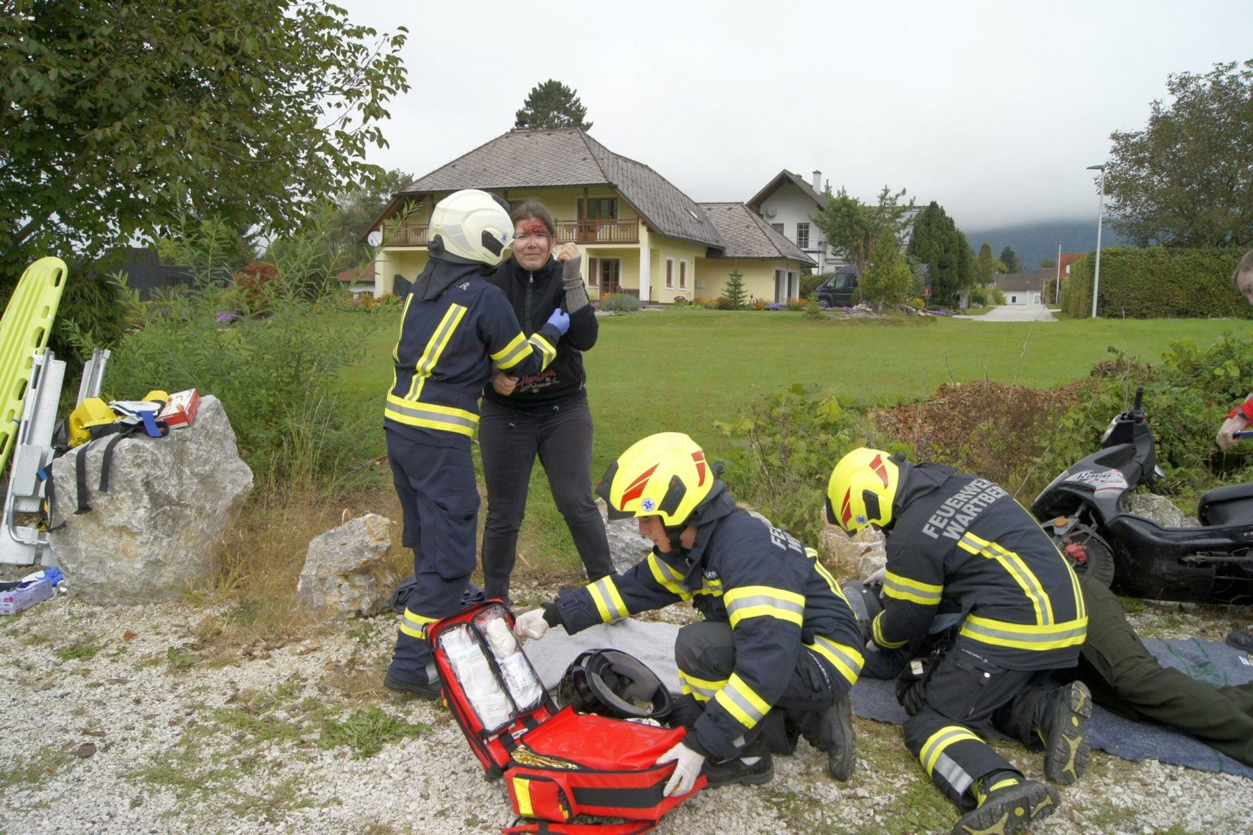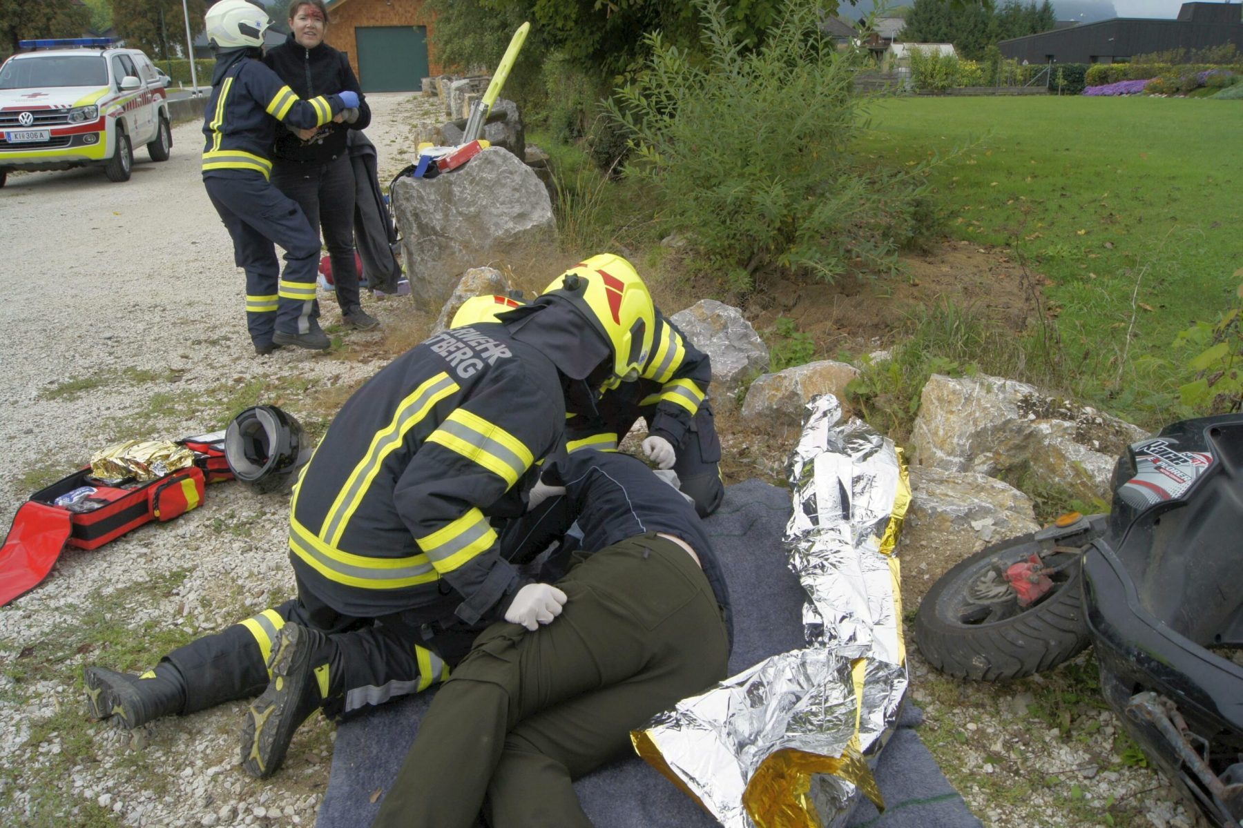 Bei der aktuellen Übung wurden den Einsatzkräften in 5 Stationen einiges abverlangt. So galt es 2 Opfer eines Grillunfalls (schwere Verbrennungen) zu versorgen. Das Übungsszenario wurde um einen Krampfanfall eines der Opfer erweitert. Reanimation unter beengten Platzverhältnissen sowie die Betreuung einer beteiligten Person im Rollstuhl stand ebenso wie ein komplexer Säureunfall am Übungsprogramm. Im Außenbereich wurde ein Unfall mit einem Moped dargestellt, bei dem die Helmabnahme so wie die Versorgung stark blutender Verletzungen beübt wurde. In der Nationalparkgemeinde Molln durfte zudem ein nachgestellter Forstunfall nicht fehlen, der den Einsatzkräften einiges abverlangte.