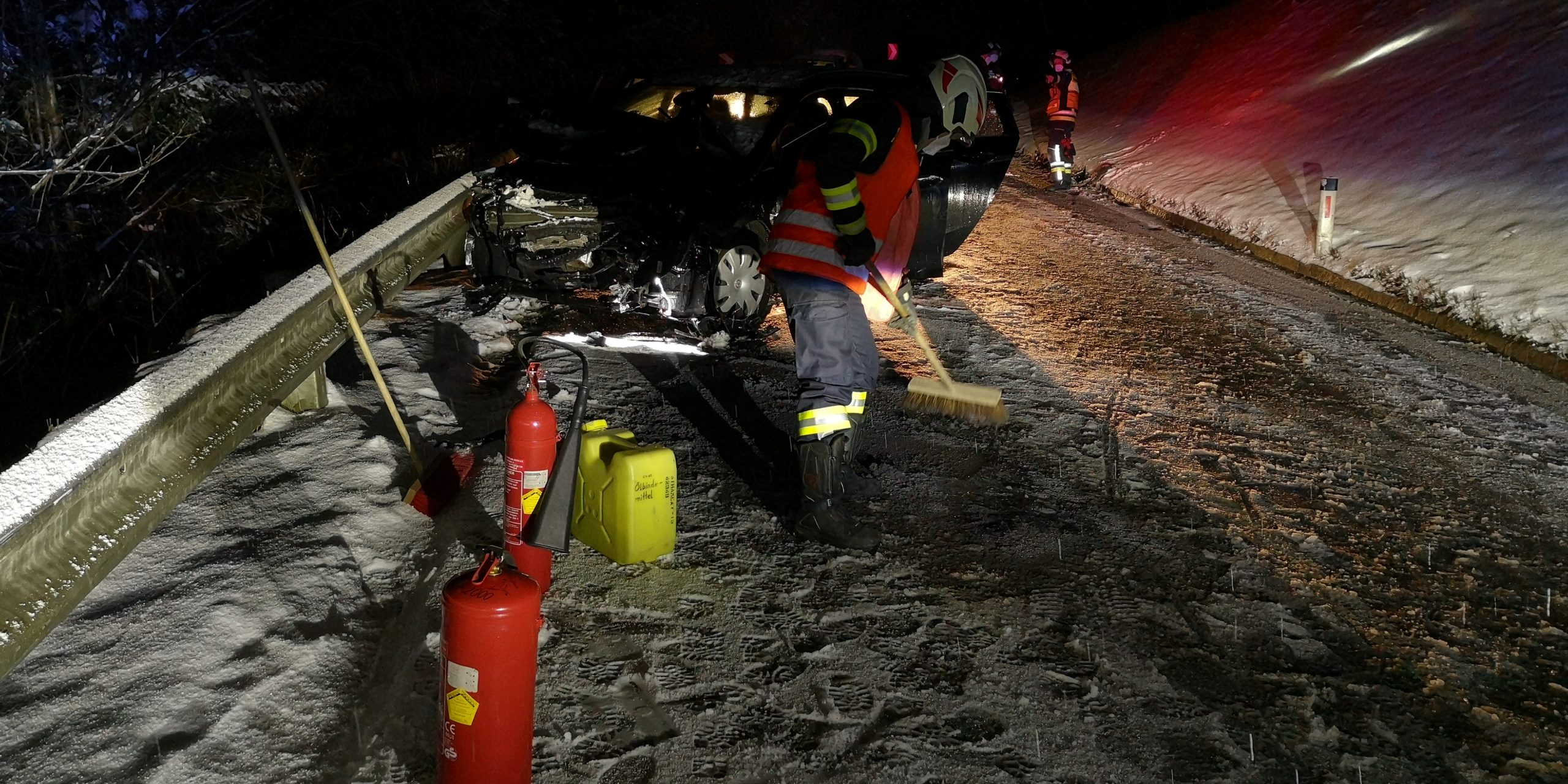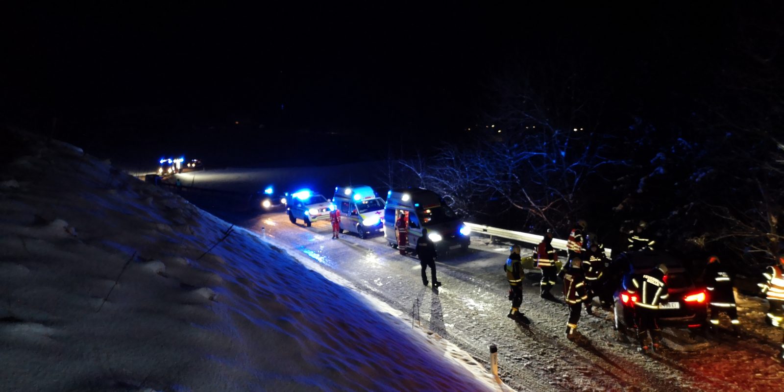 Ein 35-jähriger slowakischer Staatsangehöriger aus dem Bezirk Kirchdorf fuhr am 21. März 2021 gegen 19:25 Uhr mit seinem Pkw auf der L1327, Haunoldmühl Landesstraße Richtung Molln. In einer scharfen Linkskurve verlor er, vermutlich aufgrund der winterlichen Straßenverhältnisse, die Kontrolle über sein Fahrzeug, geriet auf die Gegenfahrbahn und kollidierte frontal mit dem entgegenkommenden Pkw eines 49-Jährigen aus dem Bezirk Kirchdorf. Die beiden Unfalllenker und die beiden Mitfahrerinnen des 35-Jährigen, 24 und drei Jahre alt, wurden mit Verletzungen unbestimmten Grades in die Krankenhäuser Kirchdorf bzw. Steyr gebracht.“