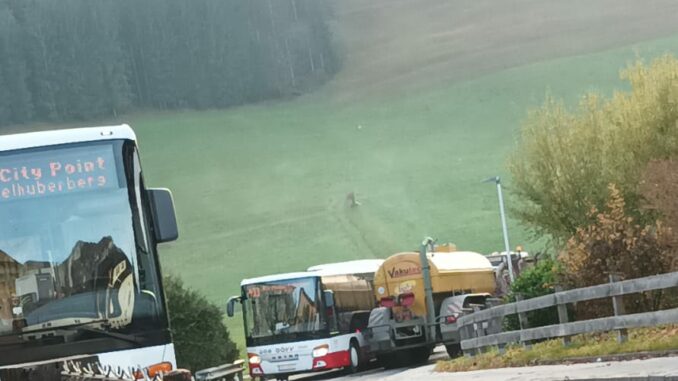 Am Donnerstag, 13. November, um 14:26 Uhr wurde die Feuerwehr zu Aufräumarbeiten nach einem Verkehrsunfall alarmiert. Ein Linienbus und ein Traktorgespann waren im Ortszentrum aus unbekannter Ursache kollidiert. Dabei blieben alle Personen im Bus sowie der Lenker des Traktors unverletzt. Es entstand allerdings erheblicher Schachschaden mit großflächigem Glasbruch am Bus. Aufgabe der Feuerwehr war es den Verkehr lokal umzuleiten, die Unfallstelle abzusichern und in weiterer Folge zu reinigen.