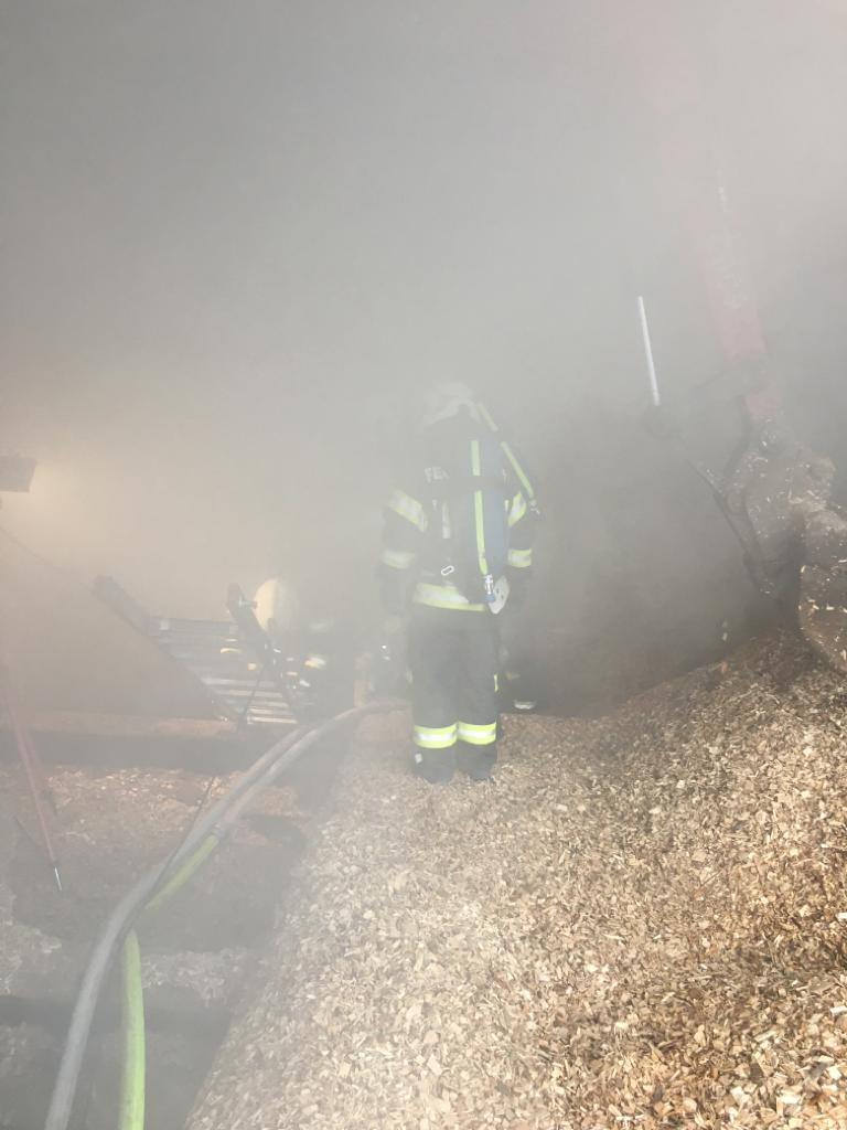 In Summe standen 6 Feuerwehren am Samstag, 11. Jänner bei einem Brand im Hackschnitzel-Lager eines Nahheizwerkes in Steinbach an der Steyr im Einsatz.