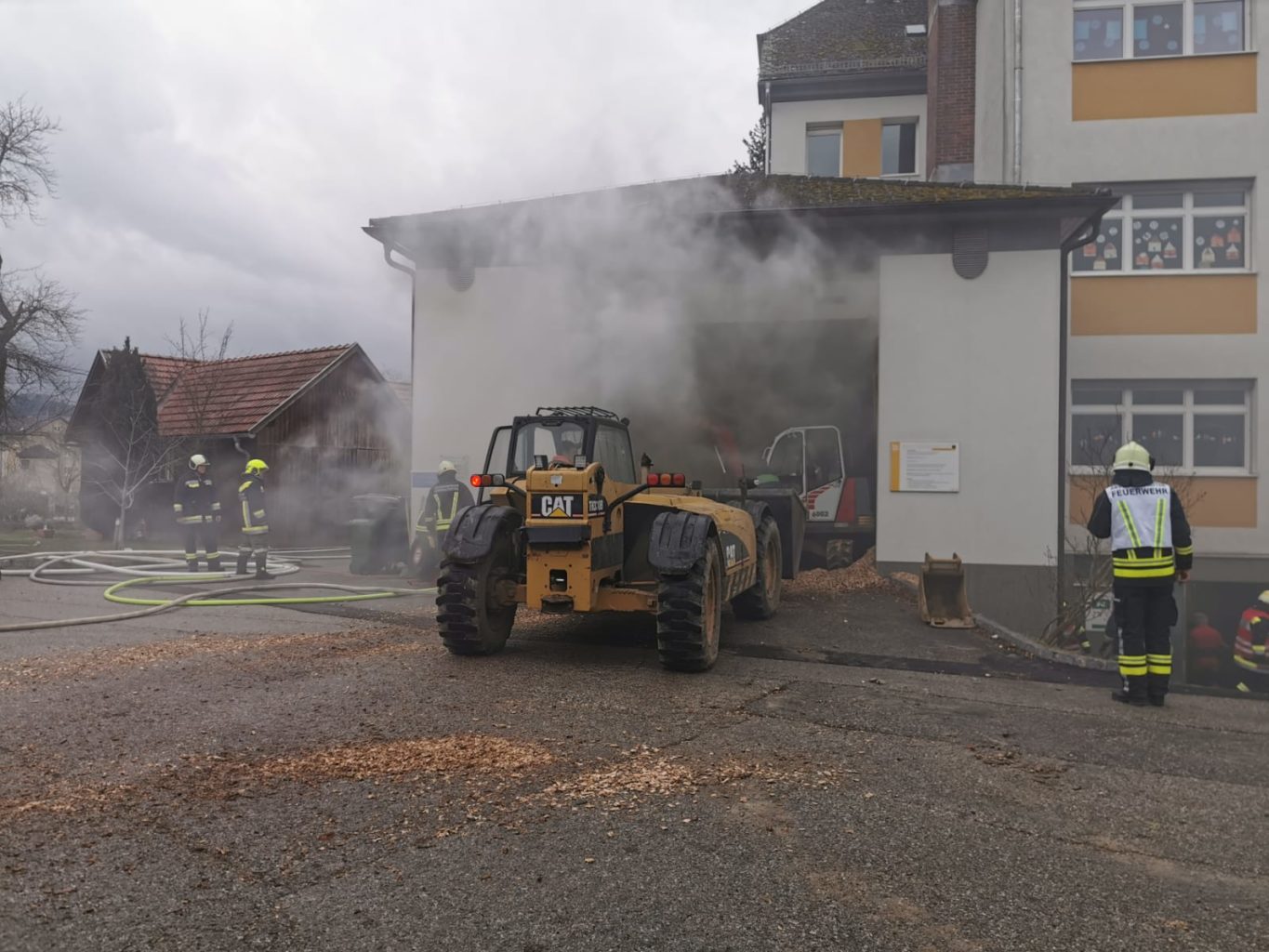 Um 7:56 Uhr wurden die vier örtliche Feuerwehren (Steinbach/Steyr, Grünburg, Pieslwang und Schweinsegg-Zehetner) zum Löscheinsatz alarmiert. Zusätzlich wurde im Einsatzverlauf die FF Kirchdorf/Krems (Atemschutzfahrzeug) und die FF Molln (elektrisches Be- und Entlüftugsgerät) dazu alarmiert. Mit Baggern wurde das Heizmaterial aus dem Gebäude gebracht und abgelöscht. Die Rauchentwicklung war anfangs enorm.