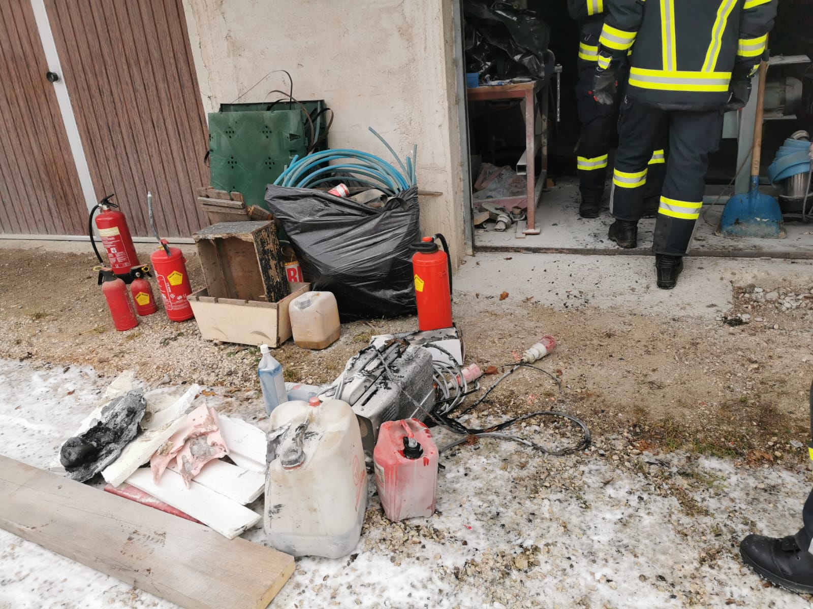 Vor Ort stellte sich folgende Lage dar: In einer ebenerdigen Garage war – vermutlich aufgrund von heißer Asche – ein Müllbehälter in Brand geraten. Die Bewohner konnten den Brand frühzeitig bemerken, setzten einen Notruf ab und begannen mit Löschmaßnahmen. Gemeinsam mit einem Nachbarn konnten der Brand unter Einsatz von Handfeuerlöschen erfolgreich bekämpft werden.