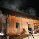 Aufgrund des weithin sichtbaren Feuerscheins wurde bereits zu diesem Zeitpunkt Alarmstufe 2 ausgerufen. Zur Wasserversorgung mussten die Einsatzkräfte eine rund 1.500 Meter lange Zubringerleitung aufbauen – alleine die FF Molln brachte ca. 950 Meter Schlauch zum Einsatz. Eine weitere Versorgungsleitung mit rund 1.000 Metern wurde von den Wehren der zweiten Alarmstufe rasch aufgebaut . Die Brandbekämpfung gestaltete sich aufgrund der Holzbauweise schwierig, so dass sich der Einsatz über Stunden hinzog und den Einsatz von 8 Atemschutztrupps erforderlich machte. Eine Brandwache (TLF 4.000) ist nach wie vor vor Ort.