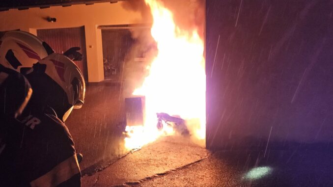 Anrainer hatten Feuerschein wahrgenommen und die Einsatzkräfte alarmiert. Vor Ort stellte Einsatzleiter Armin Steiner fest, dass mehrere große Mülltonnen in Vollbrand standen. Der Brand wurde unter schwerem Atemschutz rasch gelöscht. Im Anschluss wurde die Fassade des angrenzende Gebäudes sowie das Dach kontrolliert – eine Ausbreitung auf das Gebäude konnte verhindert und ausgeschlossen werden.