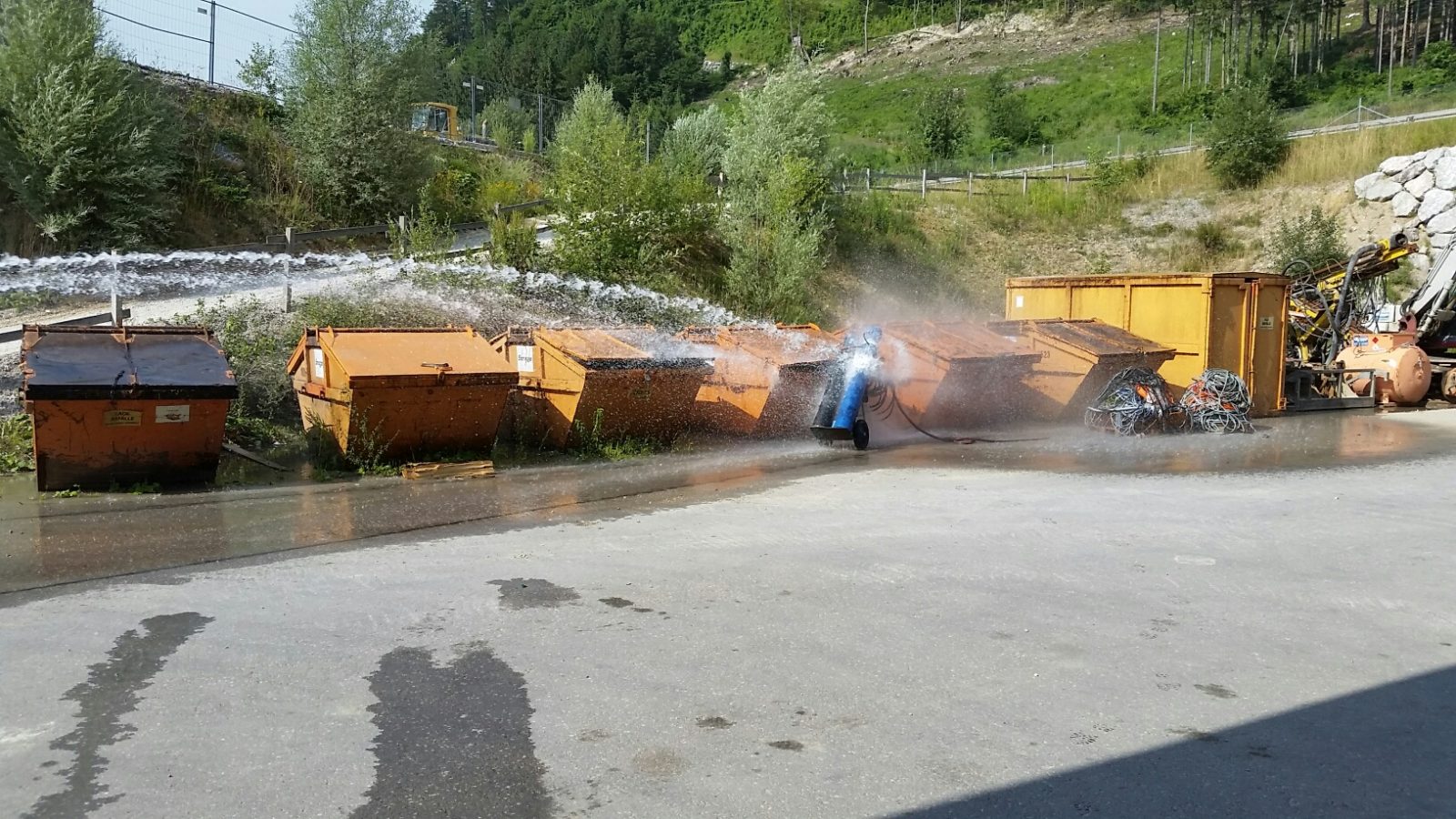 Die Flaschen wurden daher gesichert und schlussendlich unter ständiger Kühlung ins Freie verbracht. Trotz der unauffälligen Messwerte mittels Wärmebildkamera wurden die Flaschen, um eine mögliche Gefährdung auszuschließen, aus entsprechender Entfernung gekühlt und Gas abgelassen.