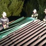 In der Kapellenstrasse galt es ein durch starke Böen abgedecktes Wohnhaus zu schützen und mittels Planen provisorisch vor Regen zu schützen. Nahezu zeitgleich wurde mit einer zweiten Einsatzmannschaft die Zimeck-Strasse von einem umgestützten Baum befreit.