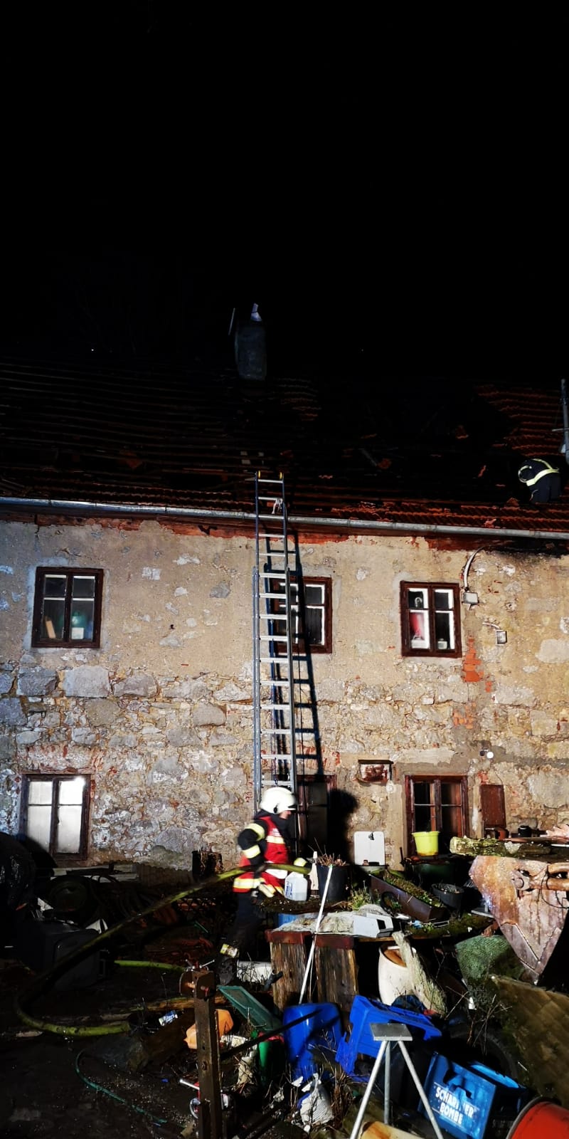 Der erste Atemschutztrupp gelanget über eine Leiter zwar rasch direkt zur Stromzuleitung bzw. zum „Dachständer“, der offenbar bereits brennende Bereich lag aber hinter einer Ziegel- und Holzwand. Für die Einsatzkräfte war der direkte Angriffsweg baulich und durch erhebliche Mengen an, am Dachboden gelagertem, Material blockiert. Löschversuche aus der Distanz von Außen und Innen führten zu massiven Lichtbögen aufgrund der noch aktiven Stromführung der Anlage. Aus Sicherheitsgründen musste die aktive Brandbekämpfung solange eingestellt werden bis der Stromversorger die Leitung spannungsfrei schalten konnte. Da es in diesem Zeitraum zu Durchzündungen im nicht erreichbaren Brandbereich kam und die Löschwasserversorgung an der Einsatzadresse schwierig ist (naher Mollner Bach führte kein Wasser) wurde Alarmstufe 2 ausgelöst – in Summe waren daher 12 Feuerwehren mit ca. 150 Mitgliedern im Einsatz.