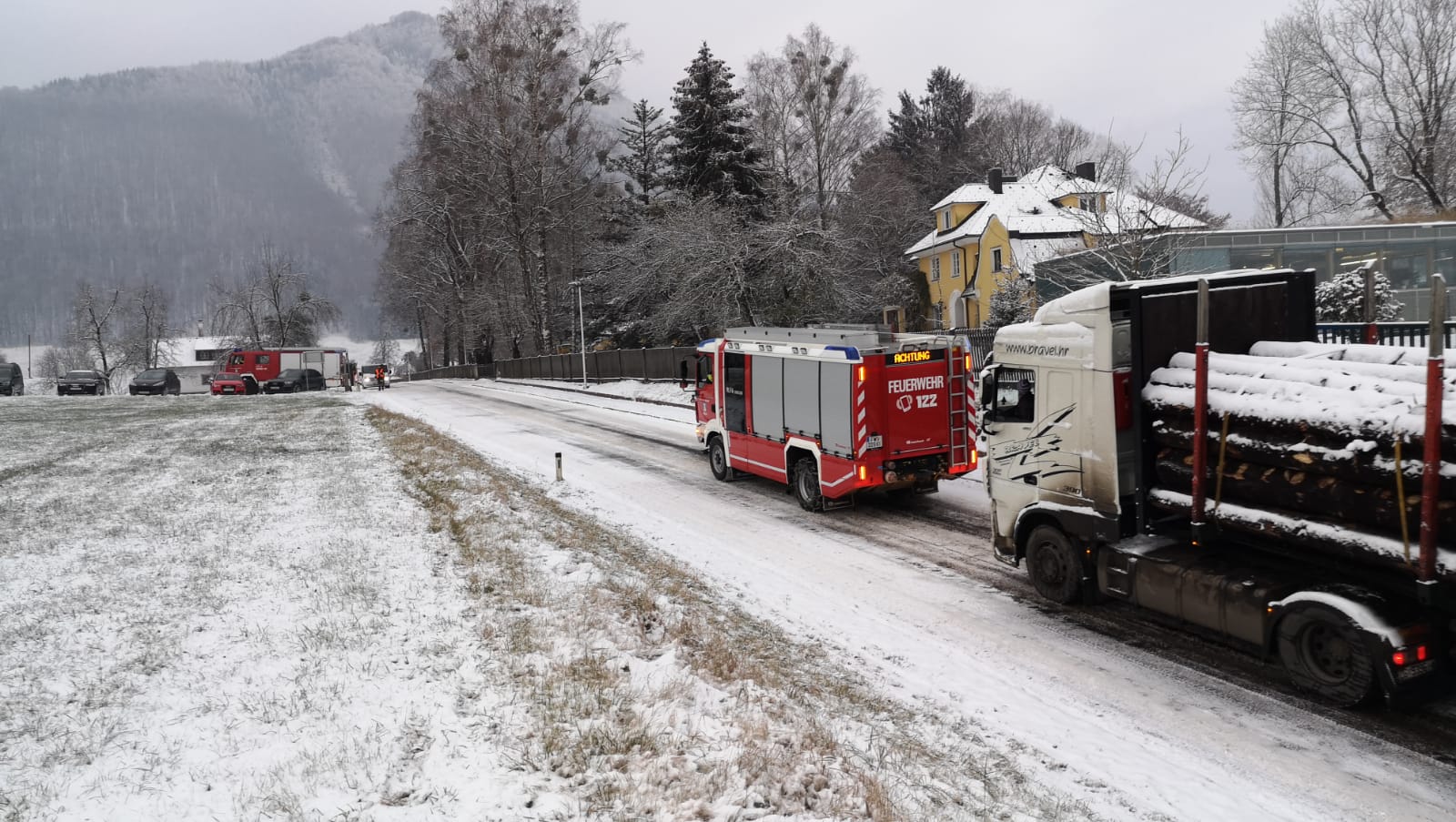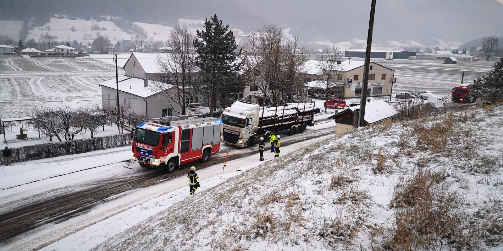 In weiterer Folge wurde die Feuerwehr zur Unterstützung hängen gebliebener Lastkraftwagen in die Dr. Bauer Straße gerufen. Auch hier konnte der Verkehrsweg rasch freigemacht werden.