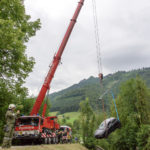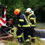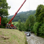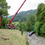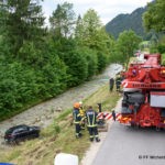 Aufgabe der Feuerwehren war es, das Fahrzeug aus dem Bach zu bergen, mögliche Umweltschäden zu verhindern und den Verkehr zu regeln. Eine sofort aufgebaute Ölsperre fand keine Verwendung, da glücklicher Weise keine Betriebsstoffe aus dem erheblich beschädigten Fahrzeug ausliefen. Der technische Zug der FF Micheldorf rückte mit dem schweren Kranfahrzeug an und hob schlussendlich den PKW möglichst schonend aus dem Bachbett. Das Fahrzeug wurde an die Familie der Lenkerin übergeben und abtransportiert.