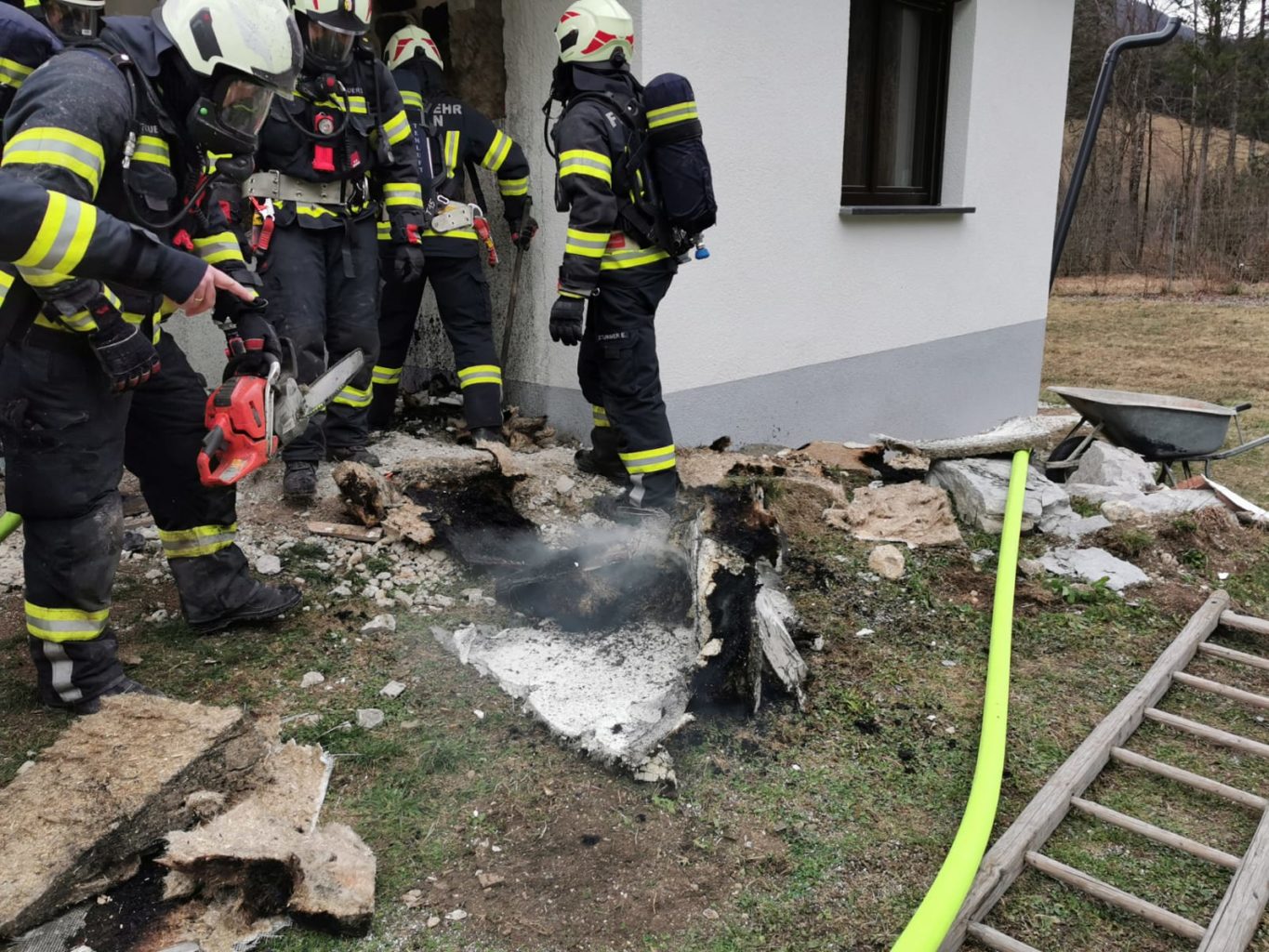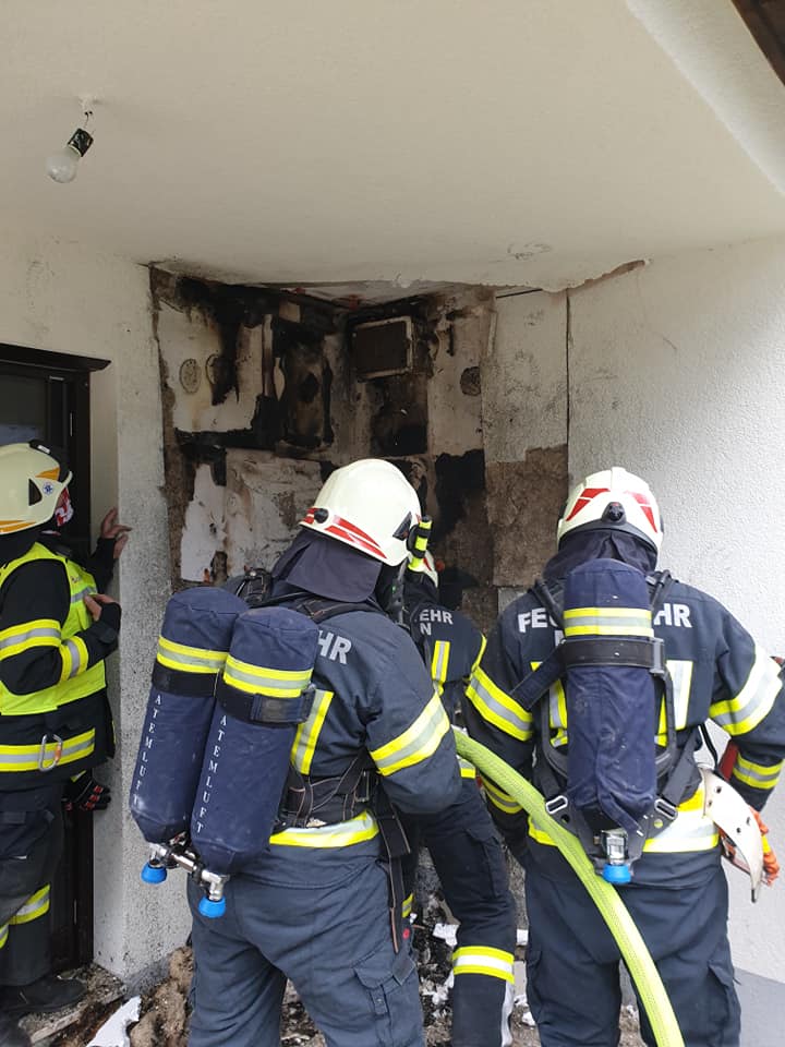 Bereits um 13:15 Uhr – trotz 13 Kilometern Anfahrt – trafen die Einsatzkräfte der FF Molln am Brandobjekt ein. Vor Ort konnte festgestellt werden, dass es im Bereich einer Kamindurchführung offenbar zu einem Fassadenbrand gekommen war, der von den Bewohnern des Hauses entdeckt worden war. Der Bereich wurde mittels Wärmebildkameras erkundet, die Fassade von Atemschutzträgern geöffnet und abgelöscht. Im betroffenen Bereich wurde die Fassade weitergeöffnet und abgelöscht – zeitgleich wurde der Dachbereich innen udn außen kontrolliert um eine Brandausbreitung zu verhindern.