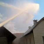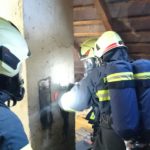 Der defekte bzw. überhitzte Kamin wurde an der Befeuerungsstelle von den Atemschutzträgern „ausgeräumt“ und verschlossen – in weiterer Folge wurden die Kamintüren im Dachgeschoss kontrolliert und mittels Wärmebildkamera überwacht. Es wurden Temperaturen von bis zu 650 Grad Celsius gemessen. Ein Ablöschen wäre allerdings „tödlich“ für den Kamin, da dieser durch den schlagartigen Temperaturabfall und den enstehenden Wasserdampf bersten würde. Daher wurde laufend die Temperatur überwacht und das Dach rund um den betroffenen Schornstein, aus dem zeitweilig Funken schlugen, vorsorglich mit 2 Löschleitungen benetzt und gekühlt.