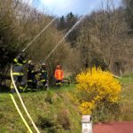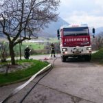 In einem derartigen Fall gilt es allerdings keine Zeit zu verlieren und unverzüglich einen Notruf unter 122 abzusetzen. Die Einsatzkräfte rückten mit Kommandofahrzeug, Tank– und Rüstlöschfahrzeug aus und erreichten nach wenigen Minuten den Einsatzort. Ein Atemschutztrupp hatte sich während Anfahrt vollständig ausgerüstet und konnte im Auftrag des Einsatzleiters sofort mit der Erkundung beginnen. Die restliche Mannschaft setzte den Hochleistungslüfter in Bereitschaft, stellte die Löschwasserversorgung sicher, sperrte die Straße und legte einen zweiten Atemschutztrupp als Rettungstrupp fest.