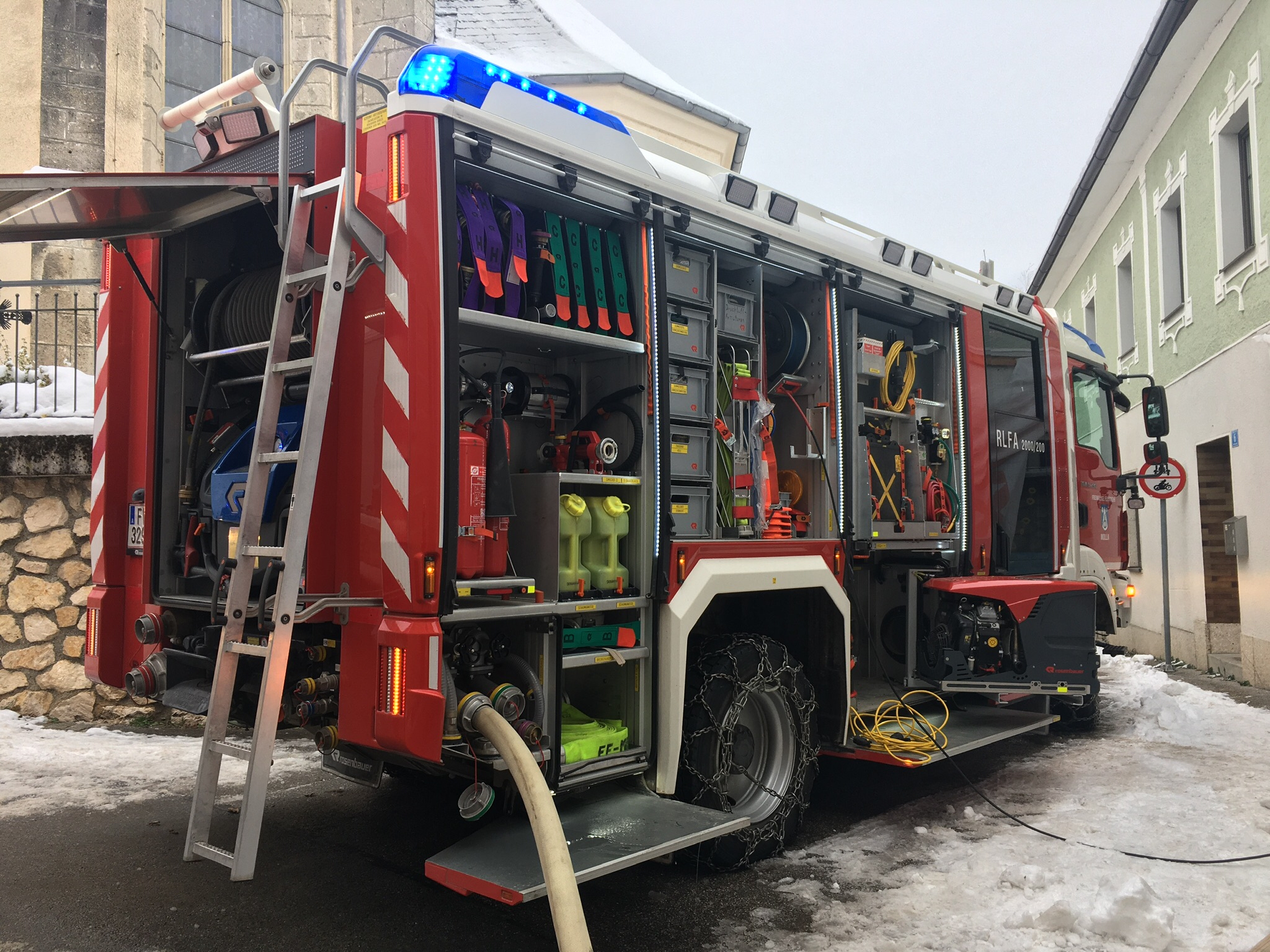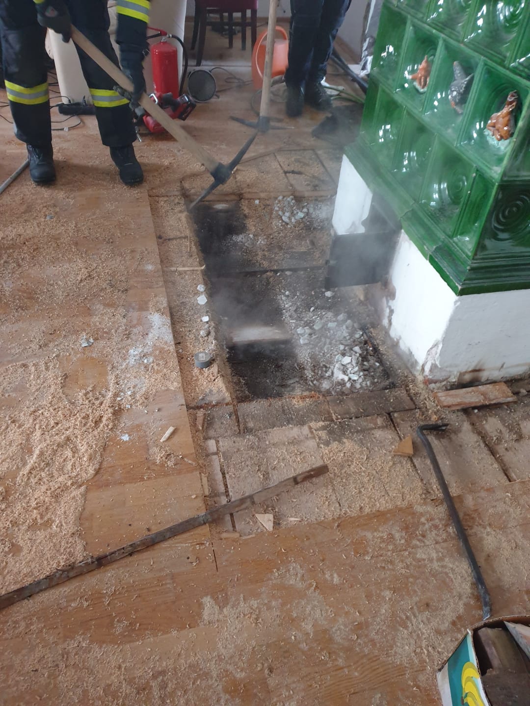 Im Bereich eines offenbar defekten Kachelofens im ersten Obergeschoß kam es nach Löschversuchen durch den Hausbesitzer zu enormer Rauchentwicklung. Mittels Wärmebildkamera konnte festgestellt werden, dass es unter dem Kachelofen zu einem Glimmbrand in der Geschoßdecke aus Holz gekommen war. Maßnahmen der Feuerwehr waren das Öffnen der Decke um den Brandherd zu lokalisieren und zu löschen sowie das Belüften des betroffenen Gebäudeteils. Die Löschwasserversorgung wurde mit 2 Löschfahrzeugen sichergestellt, die betroffenen Straßen und Wege wurde während des Einsatzes gesperrt. Um weitere Schäden zu vermeiden wurde im darunterliegenden Geschoß ein massive Abstützung aufgebaut. Dabei unterstütze ein örtliches Holzbauunternehmen kurzfristig und kompetent.