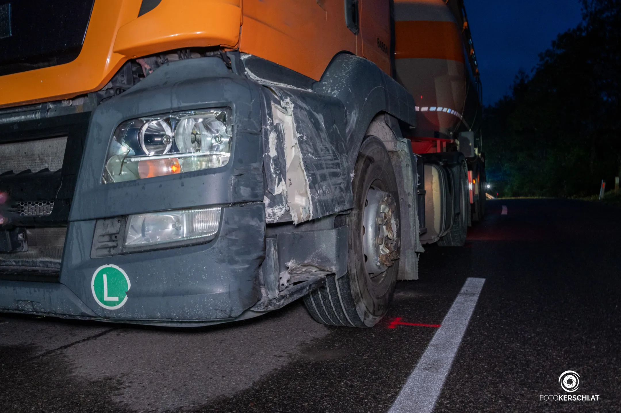 Aus bislang unbekannter Ursache kam es zwischen einem LKW und einem PKW zu einer Streifkollision, der PKW fuhr auf eine Böschung auf und blieb dort stehen, die Lenkerin des PKWs wurde in ihrem Fahrzeug eingeschlossen und konnte durch unsere Einsatzmannschaft rasch gerettet und an das Rote Kreuz übergeben werden. Nach der Erstversorgung an der Unfallstelle wurde die Lenkerin mit Verletzungen unbestimmten Grades unter Notarztbegleitung ins Krankenhaus gebracht. Weitere Aufgabe unserer Feuerwehr war es den PKW auf Anforderung der Polizei gesichert in einer naheliegenden Einfahrt abzustellen und die Straße zu reinigen. Der LKW konnte seine Fahrt bis zur nächsten Werkstätte fortsetzen.