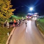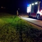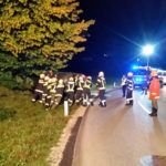 Beim Eintreffen der Einsatzkräfte der Feuerwehr war der Fahrer bzw. die Fahrerin nicht an der Unfallstelle. Die Umgebung wurde daher in Abstimmung mit der Polizei großflächig u.a. mit Hilfe der Wärmebildkamera abgesucht – es wurde niemand vorgefunden. Im Auftrag der Polizei wurde das Fahrzeug aufgerichtet, aus dem Straßengraben gezogen und auf einen angrenzenden Parkplatz abgestellt. Anschließend wurde die Verkehrsfläche gereinigt und so für den Verkehr wieder frei gegeben.