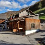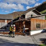 • Im Bereich Garnweid wurde die Maschinenhalle eines Feuerwehrkameraden zur Gänze abgedeckt und schwer beschädigt.