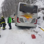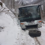 Reisebus bei winterlichen Bedingungen auf Abwegen