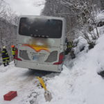 Ein Reisebus war hangseitig in den, mit Schnee gefüllten Entwässungsgraben gerutscht bzw. gefahren und konnte sich aus eigener Kraft nicht mehr befreien. Der Bus hatte zwar sog. Schleuderketten eingesetzt jedoch die mitgeführten, passenden Schneeketten nicht moniert. Diese waren aufgrund der Lage des Busses direkt an der Böschung hängend nicht mehr zugänglich und konnten nicht aus dem Fahrzeug geholt und angelegt werden.