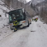 Es galt nun den Bus aus der misslichen Lage zu befreien.  Dies gelang unter Einsatz der beiden Einbauseilwinden unseres Rütslöschfahrzeugs und unseres Löschfahrzeugs. Nach der Bergung wurde der Bus mit den mitgeführten Schneeketten ausgerüstet und konnte so seine Fahrt zwar langsam aber sicher fortsetzen.