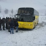 Reisebus-Bergung in der winterlichen Ramsau