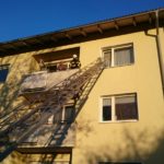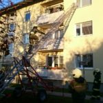 Glück im Unglück: Ein Fenster des Raumes war gekippt. Mit Hilfe der fahrbaren Schiebeleiter konnte das Fenster geöffnet und der Wäscheständer entfernt werden.