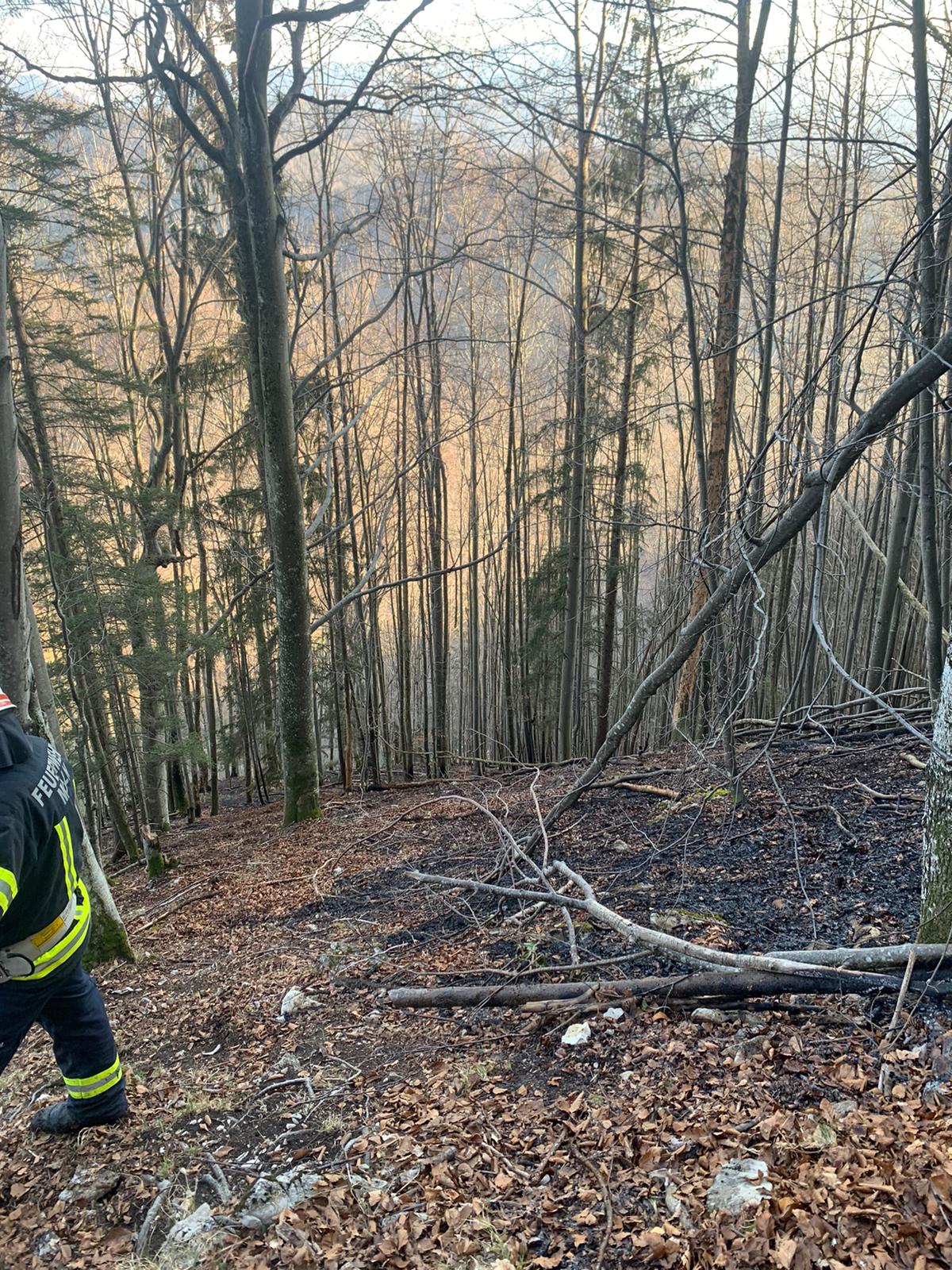 Den Einsatzkräften gelang es trotz des extrem steilen Geländes das Feuer einzudämmen und auch die Ausbreitung Berg-Aufwärts zu stoppen. Da der Bereich mit Glutnestern durchsetzt war wurden 2 Hubschrauber der Polizei eingesetzt, die vor allem den oberen Brandbereich ablöschten. Im unteren Bereich wurden Löschleitung mühsam verlegt und damit der Waldboden abgelöscht. Um ca. 18:00 Uhr konnte „Brand aus“ gegeben werden.