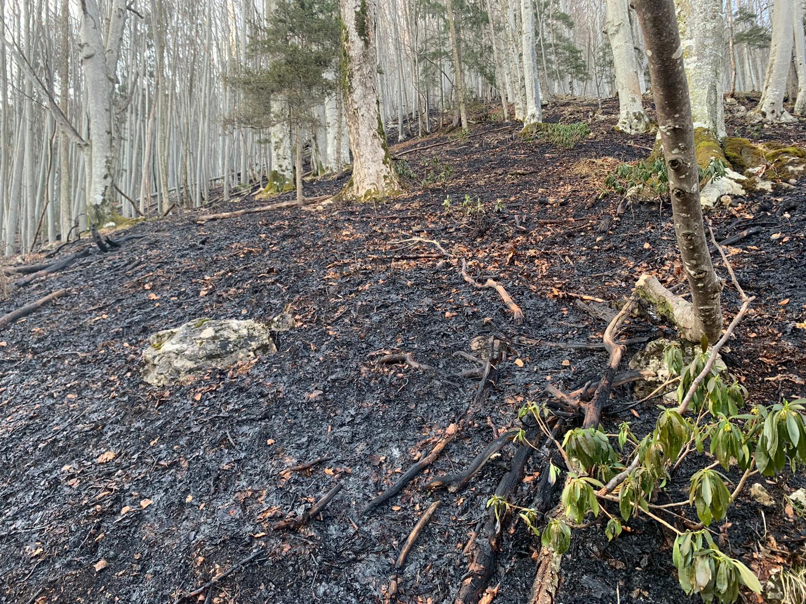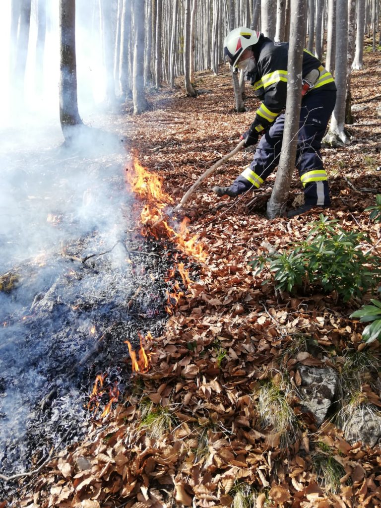 Presseaussendung der Polizei OÖ: „Ein 32-Jähriger aus dem Bezirk Liezen in der Steiermark entdeckte am 28. März 2020 gegen 13 Uhr bei einem Gang durch sein gepachtetes Jagdrevier in Molln einen Waldbrand. Daraufhin verständigte er sofort die Feuerwehr. Bei dem Brand handelte es sich um einen Bodenbrand. Dieser brach etwa 50 Meter oberhalb einer Forststraße aus und breitete sich bergwärts in steilem Gelände aus. Von dem Feuer war etwa ein Hektar auf einer Seehöhe von 800 bis 1000 Metern betroffen. Insgesamt waren 14 Feuerwehren mit etwa 150 Mann im Einsatz. Unterstützt wurde die Feuerwehr durch zwei Hubschrauber der Flugpolizei (Libelle Oberösterreich und Libelle Salzburg), welche die Brandbekämpfung aus der Luft vornahmen. Um 18 Uhr konnte von der Feuerwehr „Brandaus“ gegeben werden. Der Brand dürfte vermutlich bei vorher durchgeführten Forstarbeiten ausgebrochen und unentdeckt geblieben sein. Die Ermittlungen laufen.“ https://www.polizei.gv.at/ooe/presse/aussendungen/presse.aspx?prid=6A4C6969447A4D614559413D&pro=0